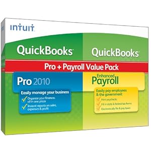 Bundles QuickBooks Pro 2010 and QuickBooks Payroll Enhanced for 1-3 Employees Easily organize and maintain your business financ